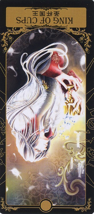 The King of Cups uses his intuition to achieve his ideals. Since Cups are turned inward, and Kings turned to the outside world, this card might be a difficult one, or it could be a powerful one.