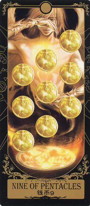 The 9 of Pentacles represents earned rest. The element Earth, attached to the Pentacles suit, appreciates the rest that completion of hard work brings. This is a good time for games and relaxation.