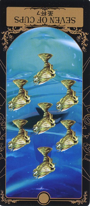 The 7 of Cups is about making a choice between different ideals. But Cups, with the water element, don't like making definitive choices that much, making this 7 in this suit a bit of a hard choice.
