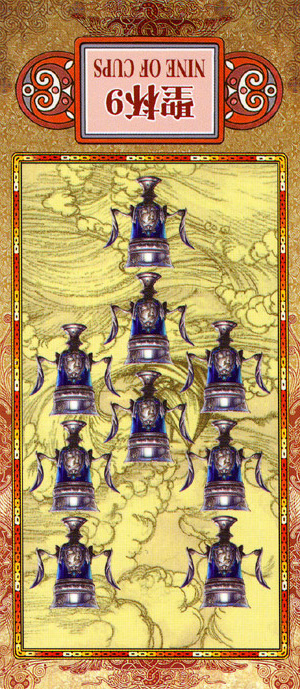 The 9 of Cups represents achievement and contentment. It is an excellent time to take some rest and enjoy yourself.