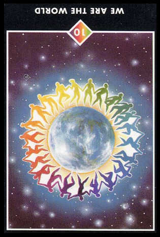 This card falls when you've completed all assignments, overcome all obstacles and are completely at peace with yourself due to your accomplishments. Yet Tarot wouldn't be Tarot if it didn't challenge you to enter entirely new worlds and start the process all over again.