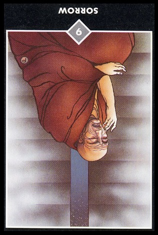 When this card falls, it is time to deal with grief cropped up over possibly a long time. It's now time to get rid of both the grief and the blockages it's caused in you.