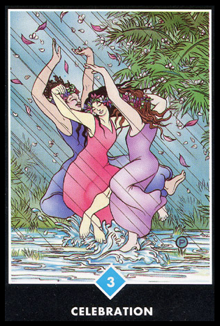 The 3 of Cups represents hope, faith and love. The 3 is a reward number and in this suit of Cups your feelings during that number will be that of joy and self-contentment.
