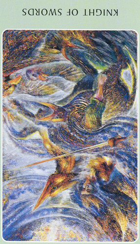 The Knight of Swords lacks the naivety of the Knight of Wands, he has analyzed the terrain ahead and weighed his options there. He knows what his own nature can throw into the mix, but does not let himself be held idle by that. The activities ahead will likely include the solving of conflicts and problems on your road to your ideal.