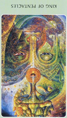 The King of Pentacles uses his Earthly attributes to rule. He goes about his work like an old style business man; he avoids unnecessary risks, aims for real results, and acts from confidence.