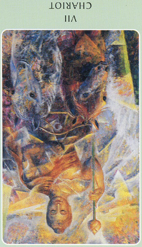 During the prevous card, The Lovers, all the wisdom of the first cards in the deck has been processed and a choice was made for personal growth. Now it's time to do something with all this baggage, to actually travel the road. A lot has been done so far, wisdoms have been accumulated and integrated into one's personality.