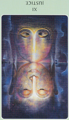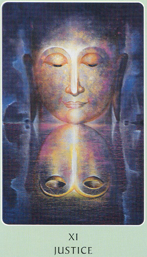 This card carries the number 11. In the Rider-Waite deck, Strength and Justice have swapped places because Waite saw links with the astrological signs Leo and Libra.