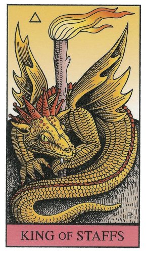 The King of Wands uses the properties of Wands (vitality, optimism, enthousiasm) to go out with confidence. He is seen as a leader with charisma.