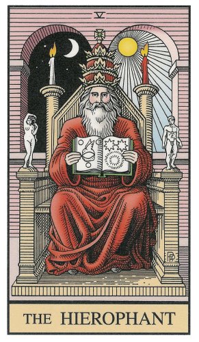 Where The Emperor is the chief of worldly power, The Hierophant is the head of spiritual matters.