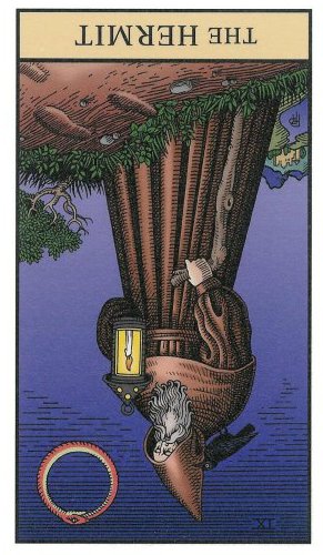 The Hermit carries the number 9. This is the highest base number. After 9 the composed numbers emerge. Therefore the number 9 is the gateway to a higher order. It is also a place to rest before embarking on the next leg of the journey.