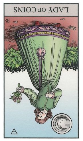 Pages explore and gather information about the road ahead, with an almost naive attitude. The Page of Pentacles is sometimes described as a bridge builder; Pentacles is the suit where the actual work is done, and the Page here enables those that follow to quickly cross difficult terrain.