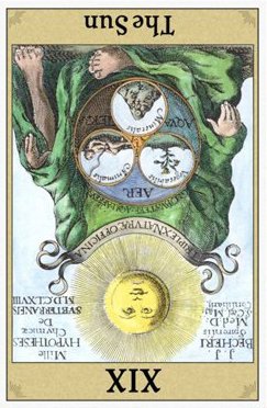 The Sun carries the number 19, a composed value of 1. This is the third composed 1 in the Major Arcana. It's the culmination of the 1's. The third 1 is a reward and a beginning at the same time. It also represents creative energy.