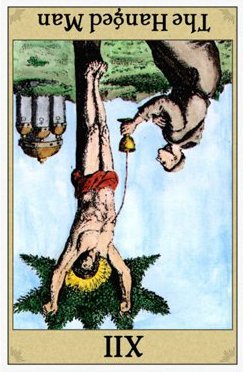 First you learned that you're not a plaything of fate, that you can make your own choices. Then you've learned how to fend for yourself and face yourself. Now, at The Hanged Man, you can learn to let go. You no longer have to cling to old values. You've found strength in yourself and by letting go, you allow growth.