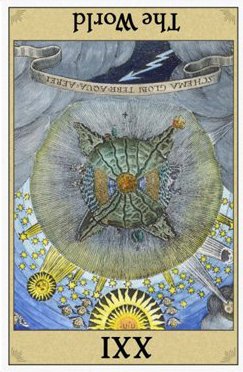 The World carries the number 21. As a composed number that is 3. The World is the third 3 in the Major Arcana. 3 is a reward number, so the third 3 must be even more powerful.