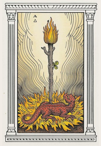 The ace of wands represents the beginning of an idea. The element fire and the number 1 give a powerful combination: enterprise and new beginnings apply to both. This is an energetic combination, which is why the card is generally considered a positive one. Spring is the season associated with this card.