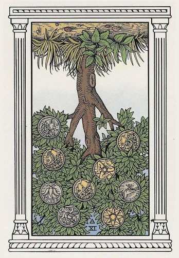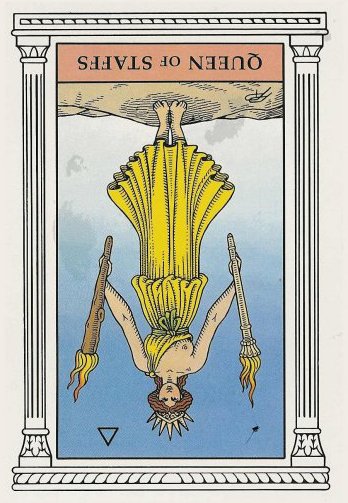 The Queen in the suit of Pentacles becomes aware of her Earthly attributes; she's reliable and sober, able to give good advice.