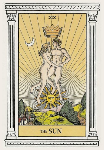 The Sun carries the number 19, a composed value of 1. This is the third composed 1 in the Major Arcana. It's the culmination of the 1's. The third 1 is a reward and a beginning at the same time. It also represents creative energy.