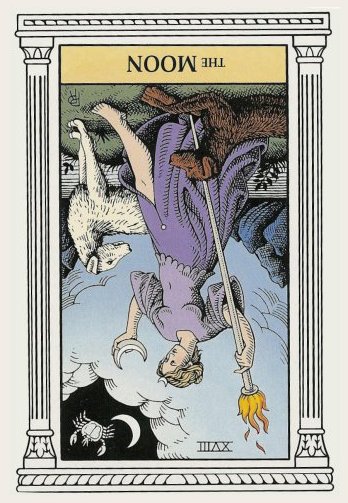 The Hermit, also a 9, closed off the upperworld. The Moon closes the underworld.