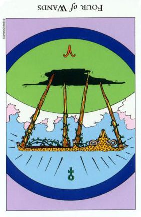 With the 4, the second cycle of this suit is commenced, where a choice between structure and feeling has to be made, where old securities have to be let go of to work towards a new future. But like Wands, Cups don't like structure much, they prefer to be free and dream rather than to make commitments and go for something.