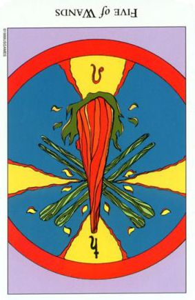 The 5 of Wands represents competition. The 5 is the second assignment number, and therefore a difficult card. 5 combined with the Wand's element fire challenges you. You'll have to fight hard for your idea, but you stand a good chance of succeeding.