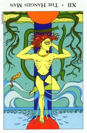 First you learned that you're not a plaything of fate, that you can make your own choices. Then you've learned how to fend for yourself and face yourself. Now, at The Hanged Man, you can learn to let go. You no longer have to cling to old values. You've found strength in yourself and by letting go, you allow growth.