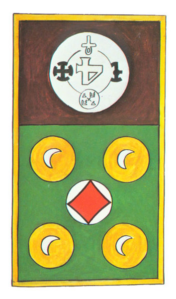 The 4 of Pentacles is about holding on to what you got. The number 4 represents structure and order, and fits well with the suit's element, Earth.