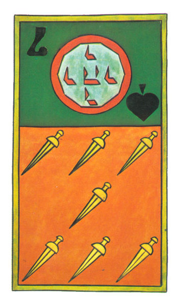 The 9 of Swords represents relief from cropped-up grief. The number 9 is a number of reward and rest and accomplishment. In the element of Swords there is not a lot of time for rest, but without any rest you'd just burn yourself out.
