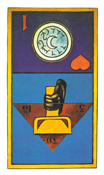 The number 1, associated with this Ace card, is the number of a fresh start with yet more new impulses coming your way. It might be compared to The Fool, the first card of the major arcana.
