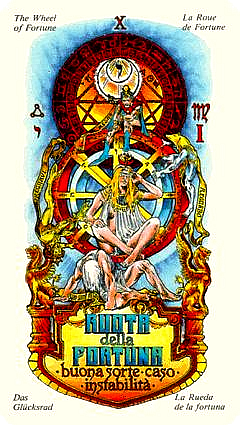 With the Wheel of Fortune, the second major cycle of Tarot commences. The first cycle in the first cards of the deck was about development as a child, accumulating wisdoms and integrating them into your personality. This second cycle is about your development as an adult. It is a more demanding cycle. You'll have to see if you can face what the world throws at you.