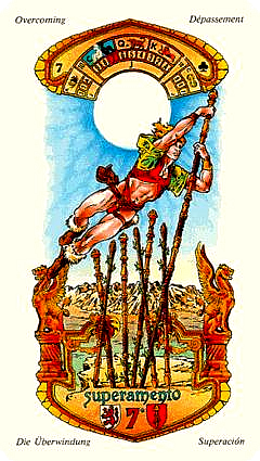 With the 7 of Wands, the striving cycle starts. It is about having the determination to complete your ideas, despite the fact that that might cause you some discomfort.