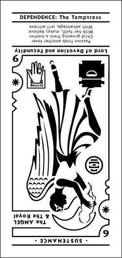 When this card falls, it might serve to point your attention to whatever is new and fresh in your life; a new job, study, love relation, business relation, project, etc. Look to the other cards in the reading to see what more can be said about it.