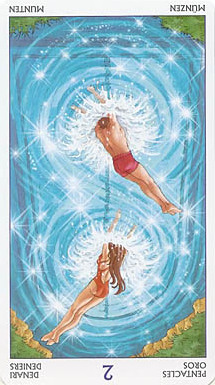 The 2 of Pentacles is an assignment number card, and the assignment here is to maintain a happy and relaxed attitude during a wait for results of what you started.