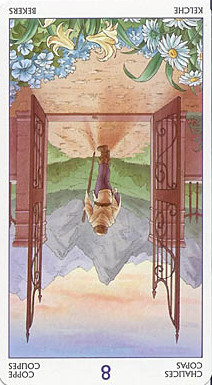 8 is an assignment number, and in the suit of Cups, it is about overcoming the urge to sink into depression caused by view on the long road ahead.