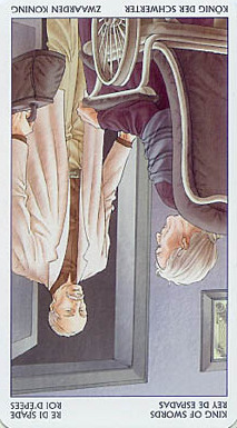 The King of Swords rules with diplomacy and a strong sense of responsibility, not just for himself but also for those around him, yet he is not afraid to make heavy decisions that compel him to eliminate dangers and dangerous opponents with some force.