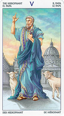 Where The Emperor is the chief of worldly power, The Hierophant is the head of spiritual matters.