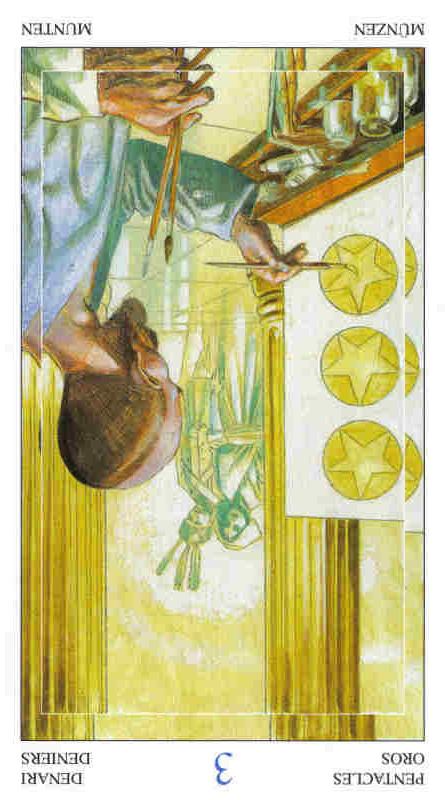 The 8 of Pentacles is about keeping up the hard work you're doing, and trying to be happy about doing that work at the same time. While the 3 of Pentacles is about completing a masterpiece, the 8 of Pentacles is about doing the apprentice work that makes you a master of your trade.