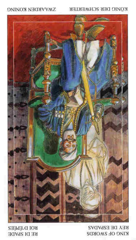 The King of Swords rules with diplomacy and a strong sense of responsibility, not just for himself but also for those around him, yet he is not afraid to make heavy decisions that compel him to eliminate dangers and dangerous opponents with some force.