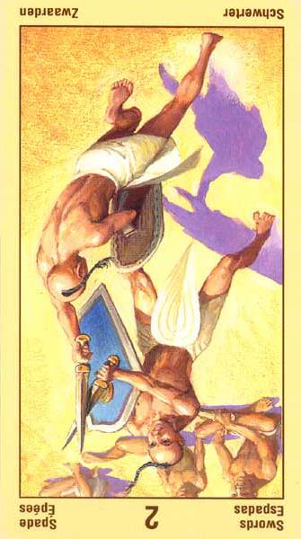 The 2 is an assignment number in tarot, and in this case of the 2 of Swords, it's about being forced to wait for something, often even while blindfolded in some sense.