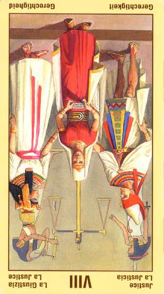 In the Rider-Waite deck, the cards for Justice and Strenght have swapped places, because Waite saw links between the cards and the astrological signs Leo and Libra.