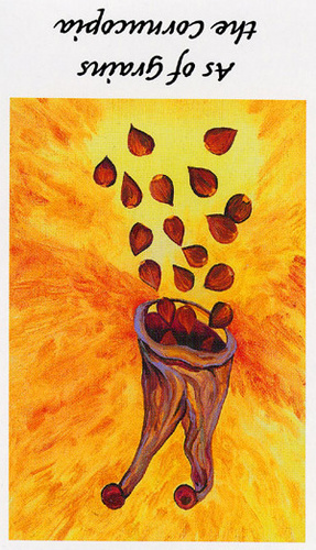 When this card falls, it might serve to point your attention to whatever is new and fresh in your life; a new job, study, love relation, business relation, project, etc. Look to the other cards in the reading to see what more can be said about it.