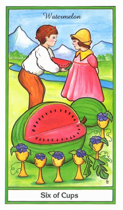 The 6 of Cups is about having confidence in something. It is the number of security and harmony. In the suit of Cups this means to be in harmony with yourself.