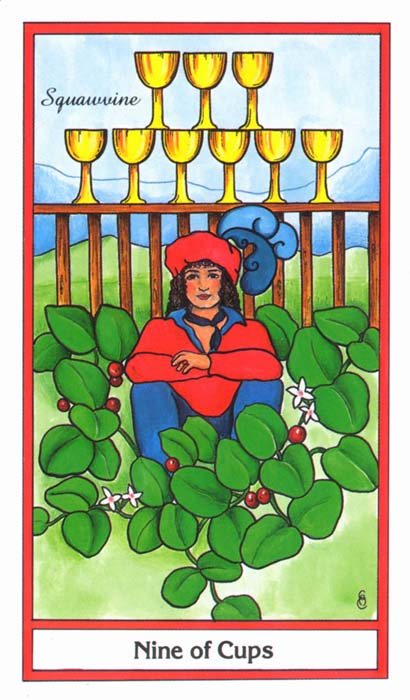 The 9 of Cups represents achievement and contentment. It is an excellent time to take some rest and enjoy yourself.