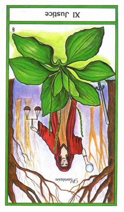 This card carries the number 11. In the Rider-Waite deck, Strength and Justice have swapped places because Waite saw links with the astrological signs Leo and Libra.
