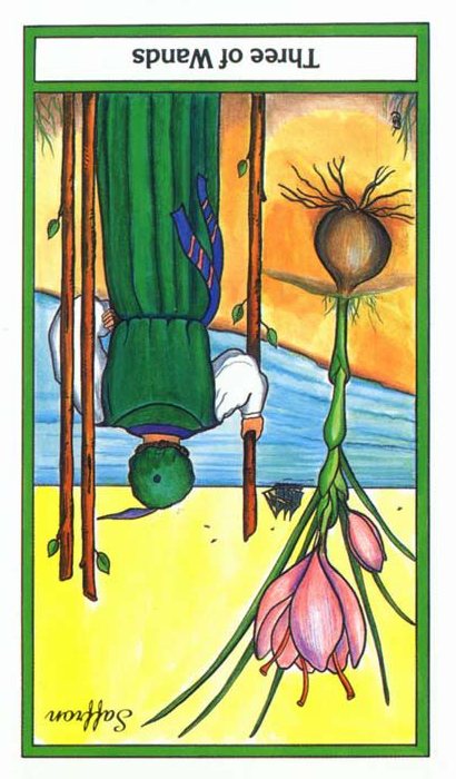 This card is about exposing your new ideas to the world. The Wand's element fire goes well with the number 3, as 3 is an output number, a number of results. Fire likes getting to results quickly.