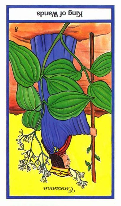 The King of Wands uses the properties of Wands (vitality, optimism, enthousiasm) to go out with confidence. He is seen as a leader with charisma.