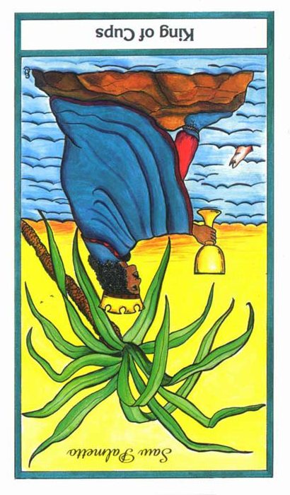 The King of Cups uses his intuition to achieve his ideals. Since Cups are turned inward, and Kings turned to the outside world, this card might be a difficult one, or it could be a powerful one.