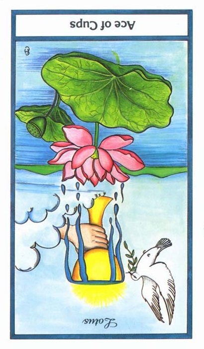 The number 1, associated with this Ace card, is the number of a fresh start with yet more new impulses coming your way. It might be compared to The Fool, the first card of the major arcana.