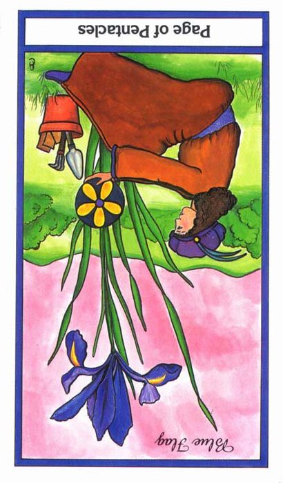 Pages explore and gather information about the road ahead, with an almost naive attitude. The Page of Pentacles is sometimes described as a bridge builder; Pentacles is the suit where the actual work is done, and the Page here enables those that follow to quickly cross difficult terrain.