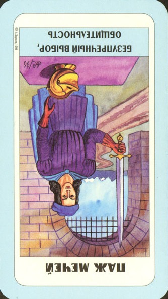If a card is upside down, that is the common notation for the opposite meaning of the card, also known as the "negative" or "reversed" meaning of the card.