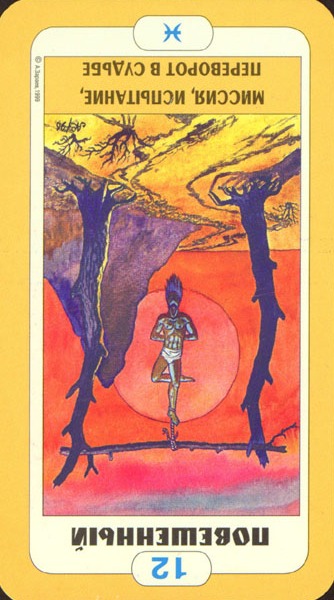 First you learned that you're not a plaything of fate, that you can make your own choices. Then you've learned how to fend for yourself and face yourself. Now, at The Hanged Man, you can learn to let go. You no longer have to cling to old values. You've found strength in yourself and by letting go, you allow growth.
